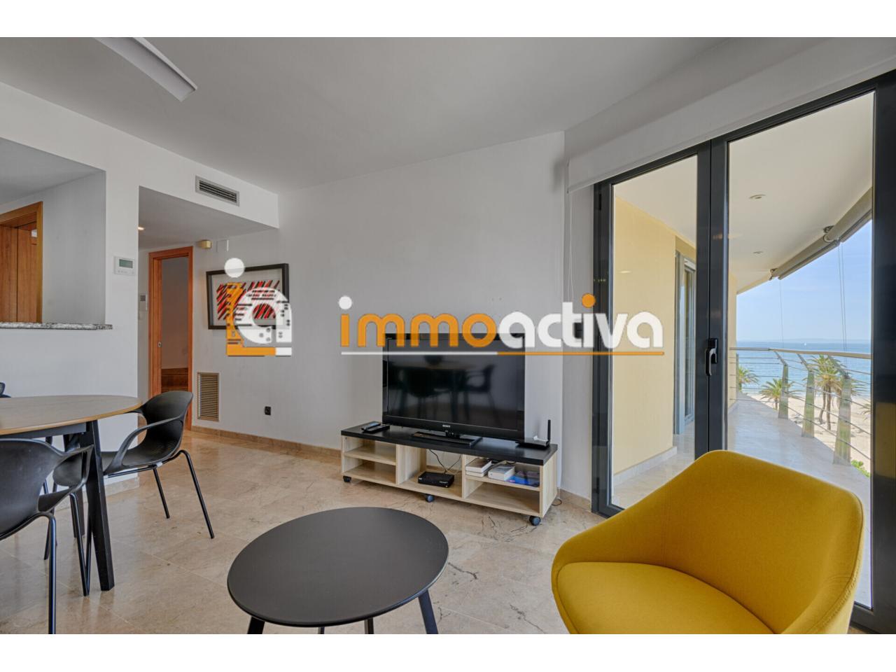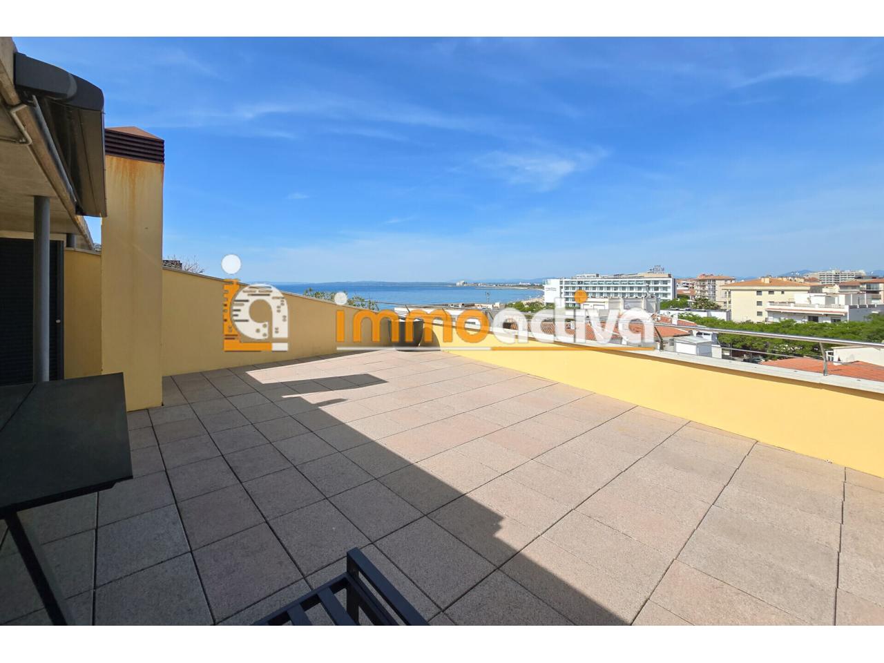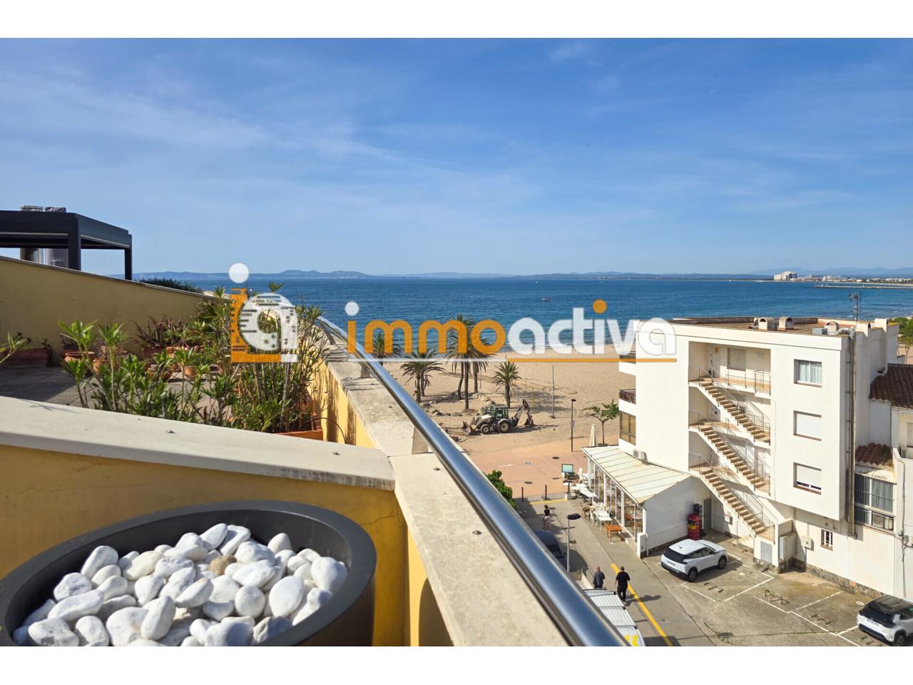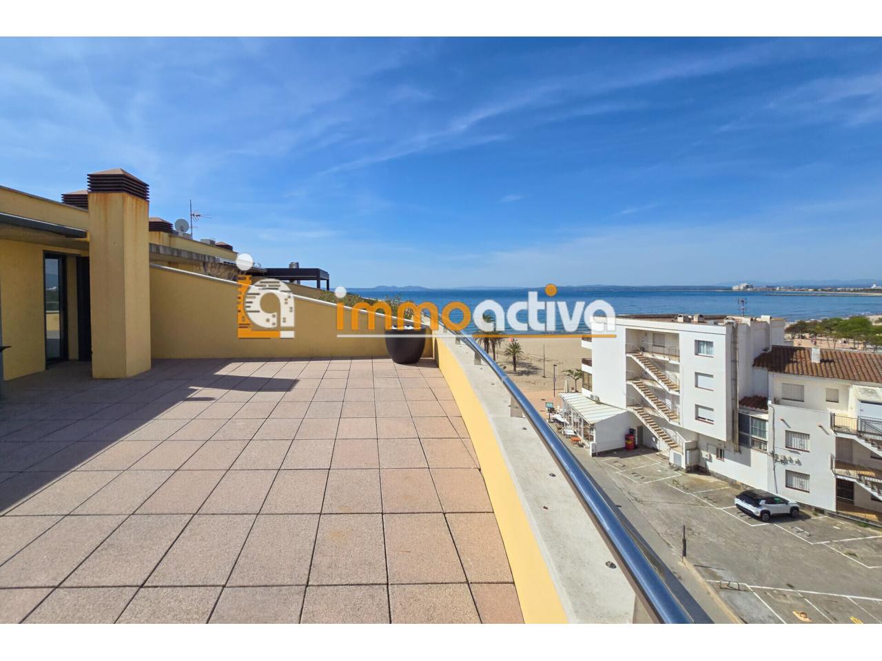 DescripciónLe ofrecemos este bonito piso, ubicado en una de las mejores zonas de Roses: Salatar. En 1º línea, además de tener el paseo marítimo y la playa a unos metros, la residencia dispone de piscina y jardín comunitarios. En la 4º y última planta del edificio, se encuentra este agradable apartamento. Se compone de una cocina americana que da al salón comedor con salida a una primera terraza con vistas laterales al mar. Tiene dos habitaciones dobles cada una con salida a la terraza y un baño completo con ducha italiana. Subiendo las escaleras, se accede a una amplia terraza – solárium de 59m2 con toldo y trastero. Ideal para pasar momentos agradables en familia o con amigos, para tomar el sol, o simplemente relajarse disfrutando de las magníficas vistas al mar y las montañas. Equipado con aire acondicionado reversible, ventanas dobles y portero automático. Tiene licencia turística. Se vende con una plaza de parking privada en el parking subterráneo del edificio. ¡Vale la pena visitarlo!